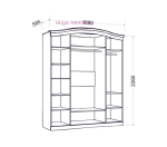Внутреннее наполнение — 2 секции со штангой под плечики, секция с полками;