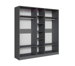 Вместительный распашной шкаф для одежды с тремя отсеками внутри: центральный с полками и два отделения со штангой. 5-створчатый шкаф с тремя зеркальными створками длиной 2 метра вмещает большой гардероб. Шкаф в цвете графит из серии Вегас фабрики ТЭКС с удобной системой хранения выпускается в нескольких размерах: 40, 80, 120, 160 и 200 см длиной, есть угловой шкаф.