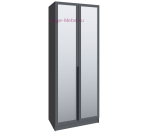 Платяной шкаф в цвете графит серый с двумя зеркальными створками. Внутри двухстворчатого шкафа штанга для одежды и две полки. Двустворчатый шкаф шириной 90 см с зеркалом и черной накладной ручкой. Высота шкафа 230 см может быть увеличена за счет антресолей на 30 или 40 см, антресоли приобретаются дополнительно. Шкаф входит в серию мебели Мадрид и может быть приобретен как отдельный предмет или в составе комплекта гардеробных шкафов.