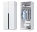 Высокий 2-створчатый шкаф для одежды со штангой и с двумя ящиками внутри продается в комплекте с антресолью. Современный шкаф белого цвета без зеркал с черной ручкой. Высота шкафа с антресолью: 240 см.