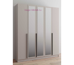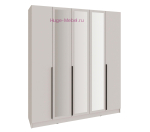 Пятистворчатый распашной шкаф шириной 2 метра в цвете кашемир с тремя зеркальными створками и тремя выдвижными ящиками внутри. Шкаф внутри разделен на три отсека: два отделения со штангами для одежды, длина каждой штанги 77 см, и отсек с 4 полками под которыми расположено 3 выдвижных ящика. Отделения со штангами для одежды на плечиках дополнительно укомплектованы двумя полками шириной 77 см. Ширина полок в центральной части шкафа 38,2 см. Ширина каждой из пяти дверей шкафа 39,6 см, двери с накладными ручками черного цвета. Шкафы Мадрид высотой 230 см может быть дополнен антресолью высотой 30 или 40 см, антресоли покупаются отдельно.