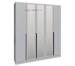 Пятистворчатый распашной шкаф шириной 2 метра в сером цвете с тремя зеркальными створками и тремя выдвижными ящиками внутри. Шкаф внутри разделен на три отсека: два отделения со штангами для одежды, длина каждой штанги 77 см, и отсек с 4 полками под которыми расположено 3 выдвижных ящика. Отделения со штангами для одежды на плечиках дополнительно укомплектованы двумя полками шириной 77 см. Ширина полок в центральной части шкафа 38,2 см. Ширина каждой из пяти дверей шкафа 39,6 см, двери с накладными ручками черного цвета. Шкафы Мадрид высотой 230 см может быть дополнен антресолью высотой 30 или 40 см, антресоли покупаются отдельно.