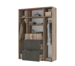 Вместительный шкаф с крупногабаритными выдвижными ящиками, полками и штангами для вещей на плечиках. Внутреннее пространство верхнего выдвижного ящика разделено на три секции для удобства хранения. За верхними дверцами расположены полки, за боковыми створками - штанги. Серия шкафов Нельсон представляет собой универсальную систему хранения с высокими шкафами разного размера.