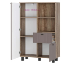 Компактный и недорогой шкаф Олива подходит для гостиной и кухни. Высота шкафа всего 136 см. Внутри шкафа шесть полок для хранения и один выдвижной ящик. Матовые фасады из МДФ с современной фрезеровкой устойчивы к воздействию влаги. Регулируемые опоры шкафа облегчают уборку.