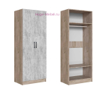 Недорогой шкаф для одежды в цвете крафт серый и цемент без зеркал. Шкаф со штангой и двумя полками входит в серию шкафов Вегас, которые выпускаются фабрикой ТЭКС шириной 40, 80, 120, 160 и 200 см. Шкаф подходит для создания удобной гардеробной в сочетании с другими шкафами серии или для спального гарнитура Вегас в том же цвете.