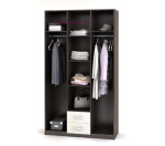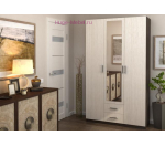 Недорогой трехдверный шкаф с выдвижными ящиками и зеркалом. Внутри шкафа три секции: два отделения со штангой и отделение с полками в центре. Шкаф выпускается в двух сочетаниях цветов: венге/дуб и ясень светлый/темный. Современный и недорогой распашной шкаф подойдет и для прихожей и для спальни.