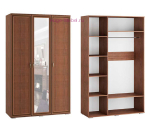 Трехстворчатый шкаф шириной 135 см с зеркальной створкой из серии модульной мебели Ливорно. Внутри шкафа отсек с 4 полками и отделение с металлической штангой для одежды на плечиках.